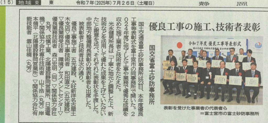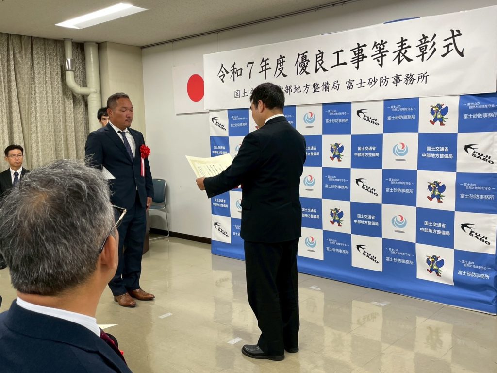 国土交通省中部地方整備局 富士砂防事務所より表彰(令和7年度)